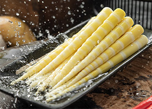 小竹筍制成菊花筍,涮火鍋、湯鍋,味尤佳。